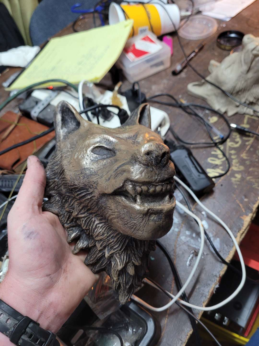 I was contracted to sculpt, mold and run copies of stylized, faux bronze resin wolf heads for use as fountains in the client’s attraction.